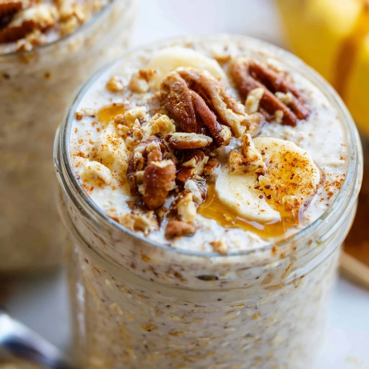 Prepare a delicious and satisfying breakfast the night before with these creamy maple cinnamon oats. Simply combine rolled oats, milk, yogurt, pure maple syrup, and warm spices, then let them chill overnight for perfect soft texture. The crunchy pecan topping adds delightful contrast to each spoonful. This make-ahead dish is ideal for busy mornings—just grab from the fridge and enjoy chilled or with a splash of fresh milk.