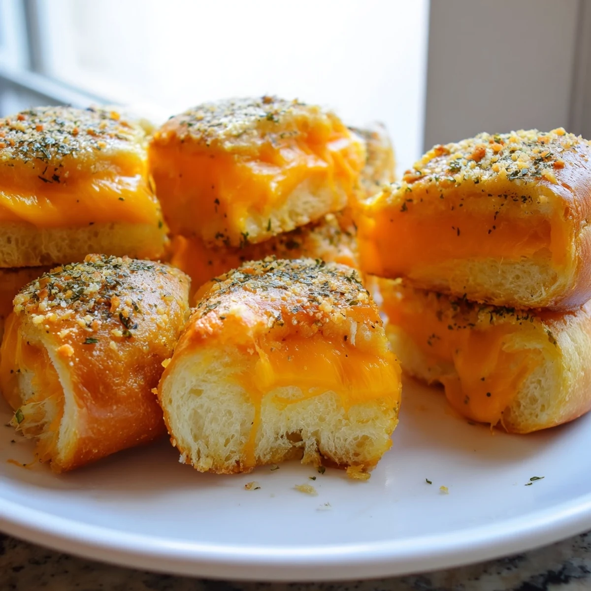 These miniature sandwiches transform sweet Hawaiian rolls into irresistible party bites. Slice the entire roll block horizontally, layer with sliced cheddar, and brush with melted butter seasoned with garlic and parsley. Bake covered then uncovered until the cheese melts completely and tops turn golden brown. The natural sweetness of the rolls pairs perfectly with sharp cheddar, creating that sweet-savory balance everyone loves.