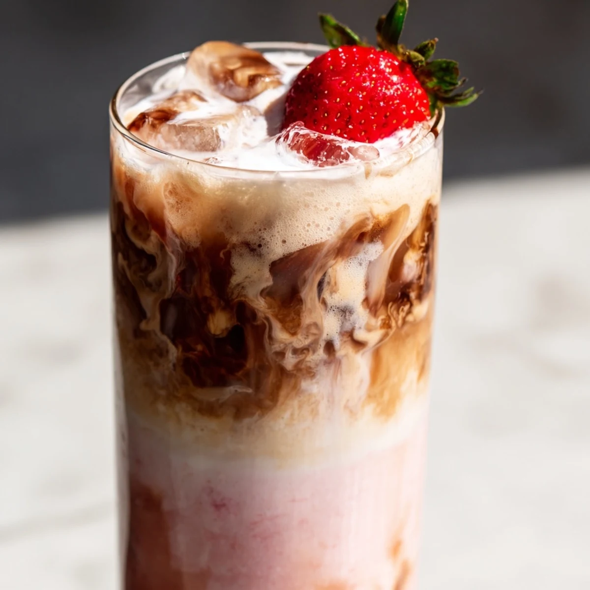 This refreshing chilled beverage combines fresh sweet strawberries with creamy milk and bold cold brew espresso. The homemade strawberry puree adds natural fruit sweetness while heavy cream creates a luxuriously smooth texture. Perfect for cooling down on hot summer days, this drink comes together in just 10 minutes with simple ingredients.